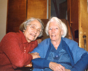 الأخت جاكلين (إلى اليسار) تحتفل ببلوغ والدتها مادلين (إلى اليمين) عامها المئة